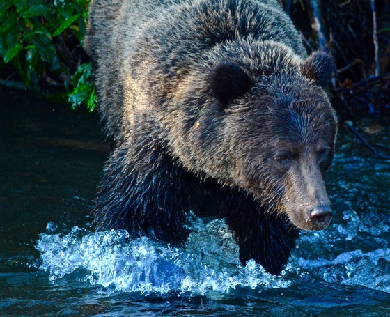 Grizzlies search for spawning sockeye salmon in the Nass River watershed, BC.