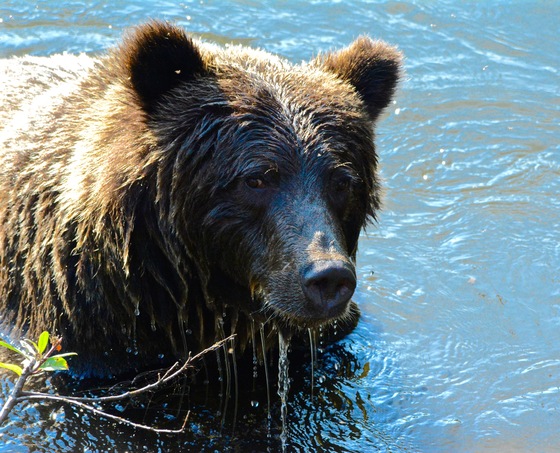Grizzlies search for spawning sockeye salmon in the Nass River watershed, BC.