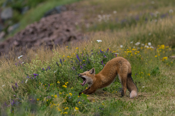 This Red Fox is having a slow start to his day taken behind the confederation bridge in PEI.