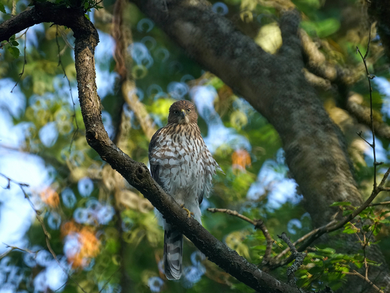 young cooper's hawk in the one of the city of Richmond park old fashioned reflex lens