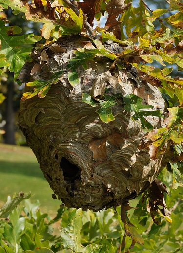 Spotted this hornet's nest in High Park. This photo was taken with great caution!