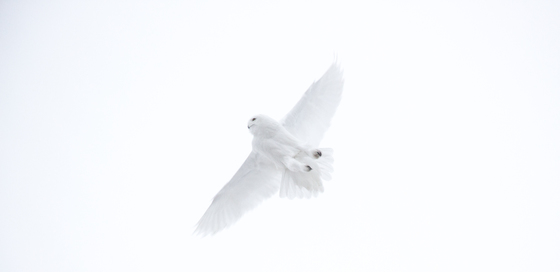 After watching a male snowy owl sit on a telephone pole, he took off and I captured the perfect image