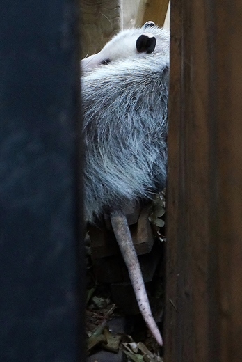 He ran behind my shed to hide. He must've been disturbed from his home as he came into my backyard in the morning, when it was bright outside. When I went to check on him again, he was facing me and we both scared each other. haha