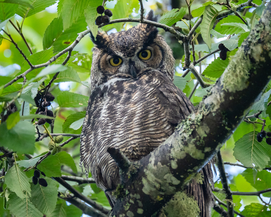 My fiancee and I were going for a walk in the park. We had seen an owl the day before, so this time I brought my camera, and we found the owl sitting in the same tree. It was curious and looked at us as we watched and enjoyed it.