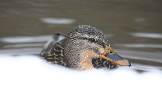 This is warmer for this female Mallard to stay in the river than laying on snow