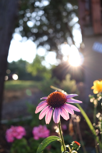 A coneflower in the evening sunset near Bass Lake in Ontario.