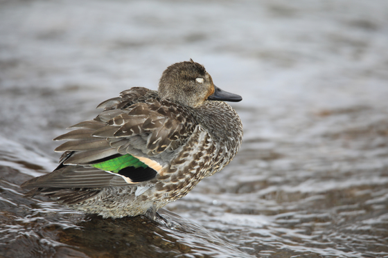 A young male Green-winged Teal near a little fall.