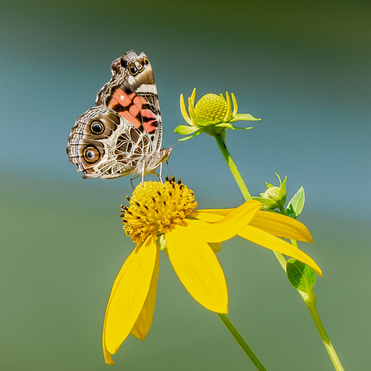 A Painted Lady sits atop this lovely bright flower.