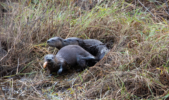 It was so amazing watching these River Otters interact with each other. I think they were siblings, and when one would catch a fish, the others would look on longingly, but they wouldn't try to take it! Otters are so much fun to watch...but tricky to photograph!