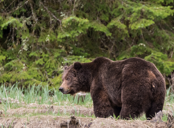 This male grizzly bear had recently come out of hibernation and was feeding on lyngby's sedge grass in the Khutzeymateen Estuary.