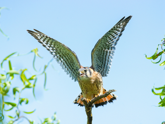 American kestrel wave wings