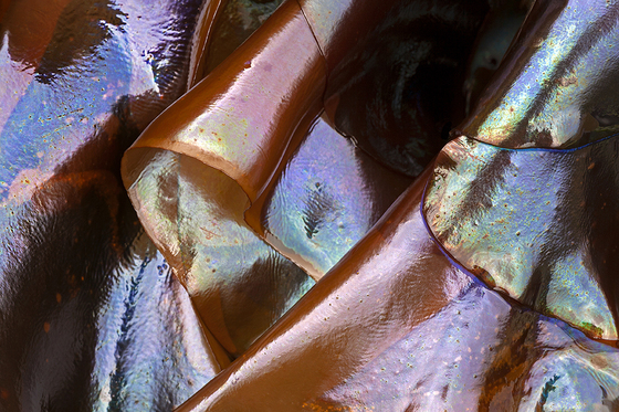 If one looks closely at some seaweeds, while they are damp you will be rewarded with this beautiful iridescent gift. Exploring around a rock during the very low late spring tide enabled me to create this image.