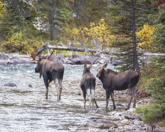 Moose family during the moose rut along the Maligne River