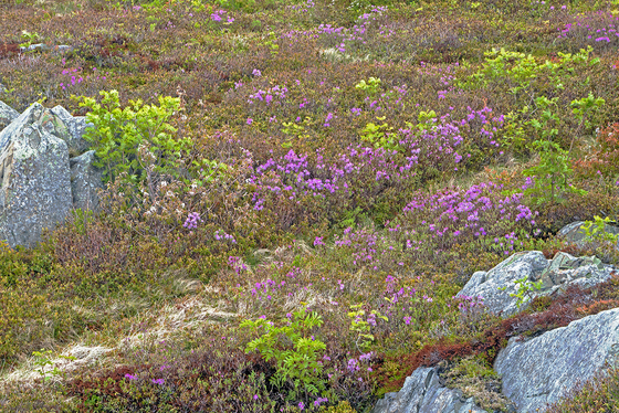 The wild azalea bloom on the slopes of Radar Hill in St. John's, NL pulled my lens mauve-ward.