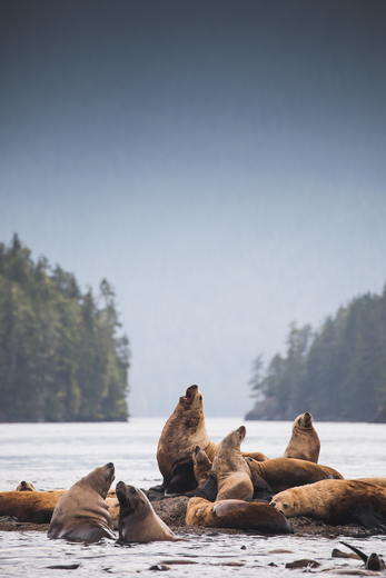 While visit The Great Bear Rainforest our focus was on viewing grizzlies, but never would I have guessed that the Sea Lions would steal the spotlight. They were fighting for space on this tiny sand bar and then as we circled with our boat, the male lifted up at the most perfect time in the tree gap in the background. I cannot wait to photograph their intense personalities again soon.