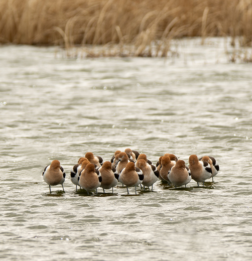 Watching this flock of American Avocets move around the lake was quite entertaining. Eventually, they found a spot to settle down... Well most of them did.
