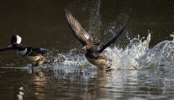 Hooded merganser When they took off, there was no warning, it was fleeting, too fast, fortunately this time captured a wonderful moment