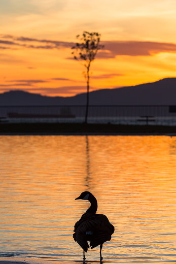 I was walking the seawall with my girlfriend during sunset and found this goose sitting alone in the pool in Stanley Park just taking in the scenery watching the people walk by.