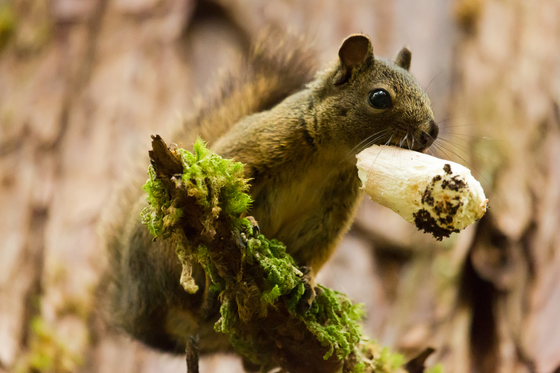 My friends and I were just finishing our north coast trail adventure and we were almost back at the parking lot when I found this guy scavenging on the forest floor, once I spooked him he ran up the tree to where I couldn't get him and stared at me like I wanted to steal his mushroom, luckily all I wanted was his photo.