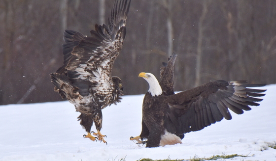 An immature Eagles fights a mature bird.