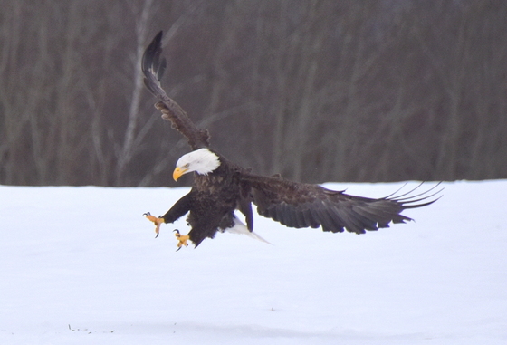 A Bald Eagles searches for food in Sheffield Mills, N.S.