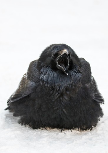 Watched this Raven fluffing itself up on the snow and calling out to its mate who was perched in an opposite tree and swooping down occasionally with aerobatic displays to answer the calls