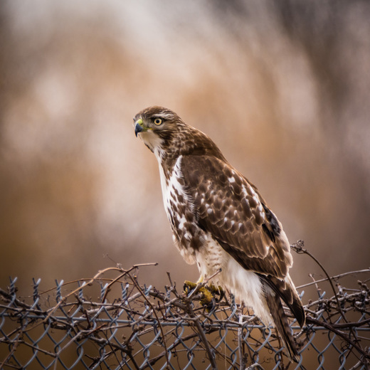 Caught this Red-Tailed Hawk hunting by the highway. Usually quite skittish I managed to get two shots before it took off, using my vehicle as a blind.
