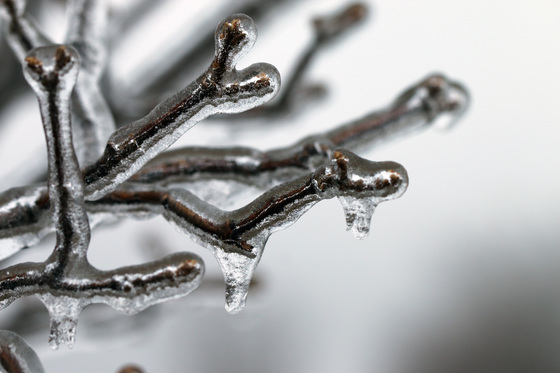It is quite amazing to see the natural flow of ice formation on these twigs. When there is excess water, gravity takes over. Otherwise the glazing is smooth and evenly weighed.