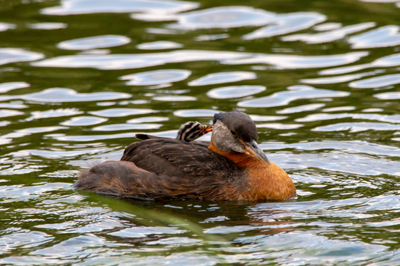 I fell in love with birding spending my summer hiking in the Yukon. I've always loved seeing animals in nature, but the experience that really got me into birding specifically was when I discover a mating pair of Rednecked Grebes who had nested in the tall grass of Hidden Lake 2 in Whitehorse. I would often return to their nest to watch the progress of their eggs hatching to chicks, and their chicks fledgling to immature adults. My favorite shot of the whole experience was the when I first spotted the chicks hitching a ride on their parents backs.