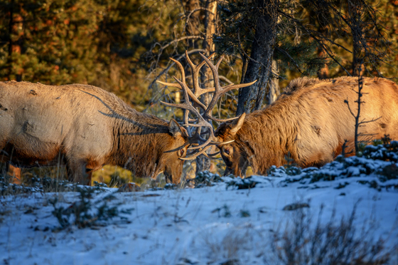 Elk spar at first light in Banff National Park