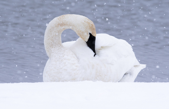 Beautiful Trumpeter Swan at water's edge - Kempenfelt Bay Barrie Ontario