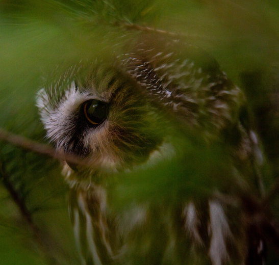 This little Northern Saw Whet Owl was intently observing from up above in the pines. Such a small and really cute little guy.