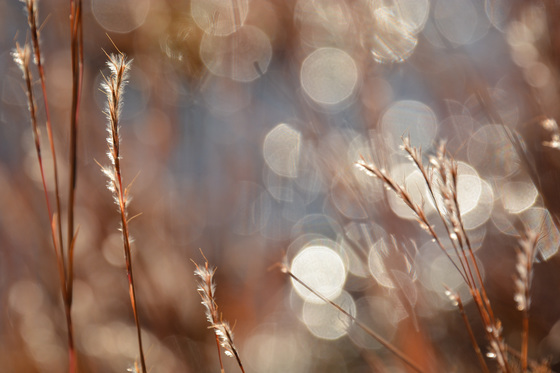 Was doing some fall colours photography and used manual focus here to pick up the reflections in the background to create some beautiful bokeh behind this feathered wild grass.