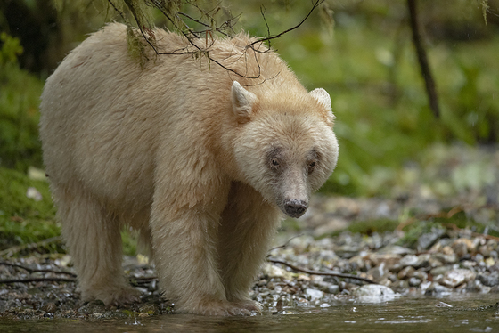 The Spirit bears beautiful white coat gives it a ghostly appearance as it moves through the forest.