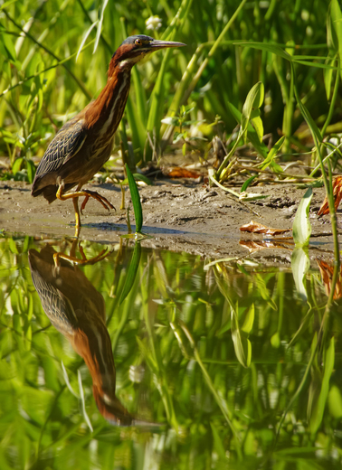 A Green Heron goes for a morning walk alog the edge of the Rouge River, Scarborough ON