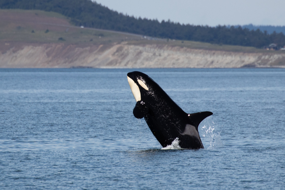 This is J40 or "Suttles", a female member of J-Pod, part of the endangered southern resident killer whale population. Despite the challenges she faces to find food for herself and her family, she still shows a playful spirit. Suttles is one of the remaining 73 surviving members of this clan.