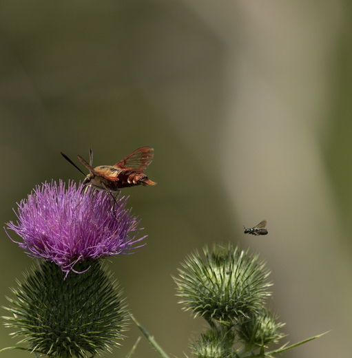 I was trying to photograph a butterfly which wasn't co-operating and took off. Out of the corner of my eye I saw a flash of orange. Found it and was so excited to see this Hummingbird Moth. It's only about one and a half inches long but so beautiful. Must have taken about 500 shots.