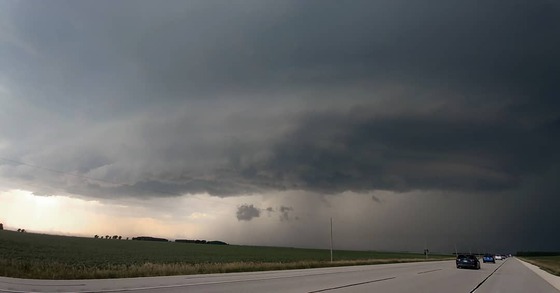 July 30, 2021 we encountered this cell coming straight at us. 16 degree drop in temp along with rain, hail & wind; we had no visibility & it sounded like a freight train was on top of us.
