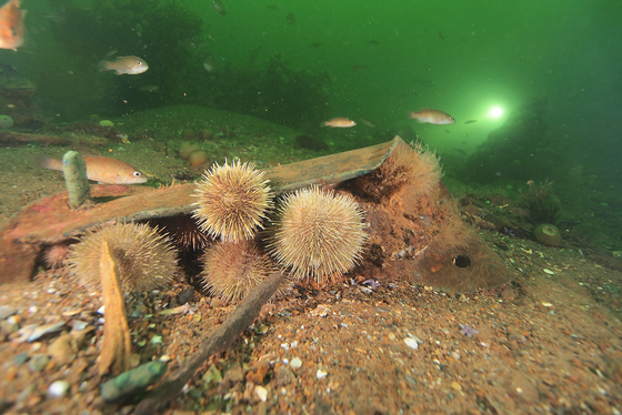 The debris field of an unknown shipwreck provides it's own ecosystem in the Bras d'Or Lake, Cape Breton, Nova Scotia