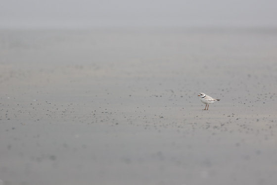 Piping plovers need undisturbed beach access to raise their chicks. This adult, with chicks higher up the beach, was foraging near the water. I laid in the sand, quietly watching the family as they moved up and down the beach. I liked the contrast of this shot - though it looks lonely for the bird, the lack of people, dogs, and vehicles is necessary for them to raise their family.