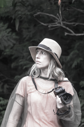 clothing hat sun_hat photography adult female person woman photographer lip hand shoulder photograph black flash_photography camera_lens cap standing