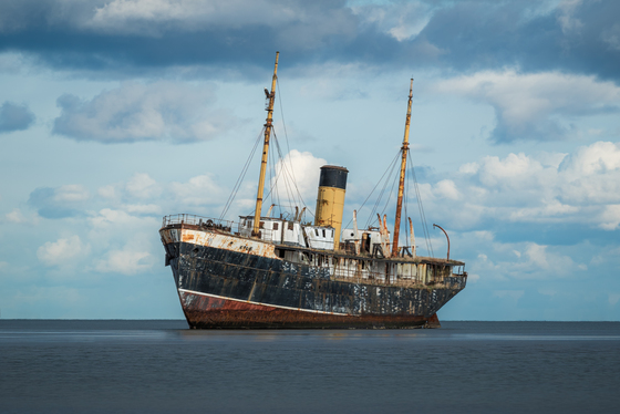 The SS Kyle in Harbour Grace Newfoundland. The ship still sits peacefully in the middle of the harbour and, as seen on the photo, some birds of prey use the ship's crows nest as a preferred perch to identify its next potential fresh meal of duck or fish. In the past, efforts were made to paint and restore the old steamship wreck as it is considerable tourist draw for the area but for various reasons the likelihood of any further painting and restoration is increasingly slim.