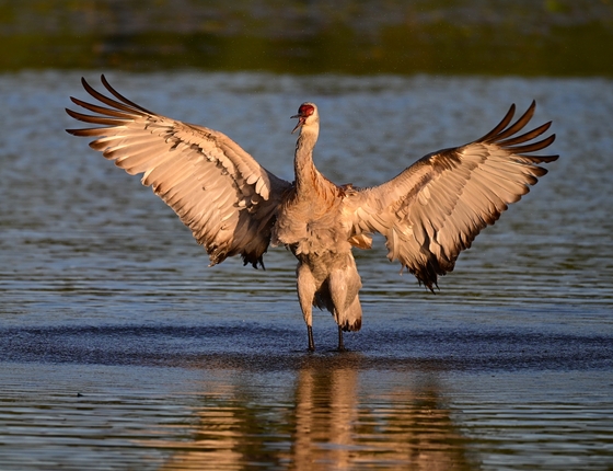 Sandhill Crane extending its impressive wings.