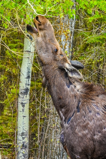 Moose feasting on willow tree leaves in White Spruce Forest St.Albert Alberta
