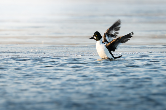 wildlife birds animal bird duck vertebrate fluid common_goldeneye beak liquid ducks water_bird lake