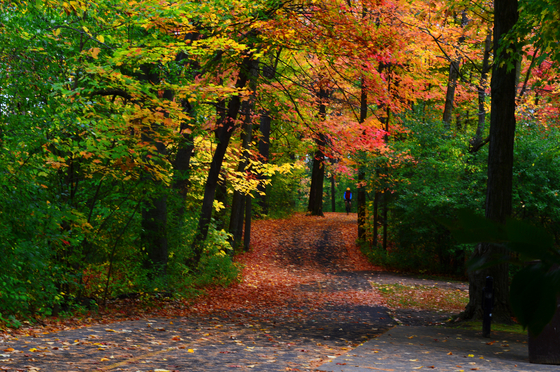 Tagged: bike path biking fall foliage autumn ottawa park walking colours university ontario plant tree leaf person road green yellow nature natural_environment red branch vegetation wood