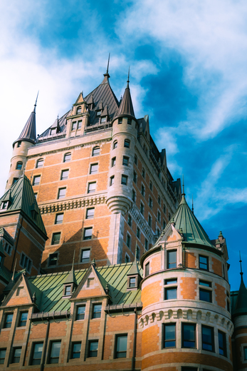 Tagged: quebec city canada architecture heritage travel culture flag blue sky history landmark ch teau frontenac building spire tower urban castle fortress housing facade turret medieval_architecture steeple