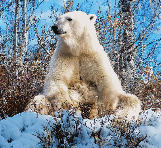 Not far away from the town of Churchill I saw this very tired Polar Bear female. Photo taken from a tundra van provided by Frontiers North, the Gunter Family. The best time for polar bear watching in Churchill, Manitoba is October and November, when many bears congregate along the Hudson Bay shoreline waiting for the sea ice to form so they can hunt seals.