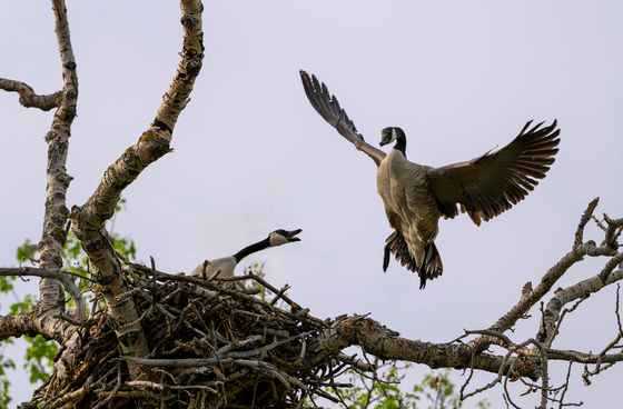 Every year these two geese take over this eagle nest, possibly to have a nest of their own.