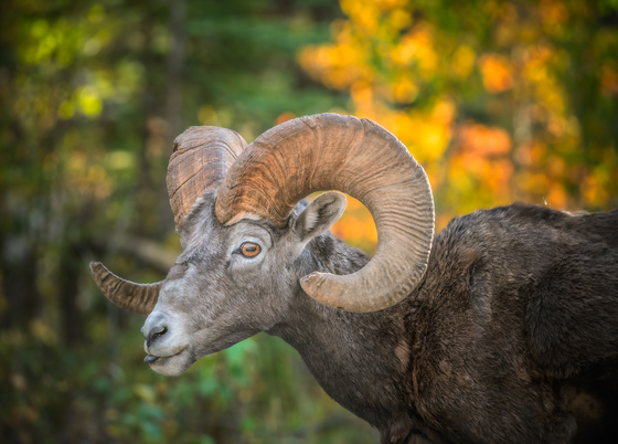 While driving in Jasper National Park, I spotted this majestic bighorn sheep framed by the golden hues of fall. The soft evening light and warm colours in the background made the moment even more special. Moments like these remind me how nature weaves grace and power into the simplest encounters on the road.